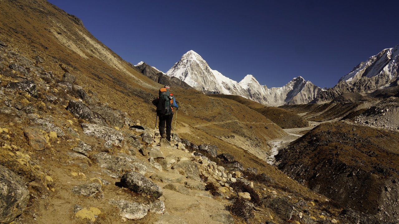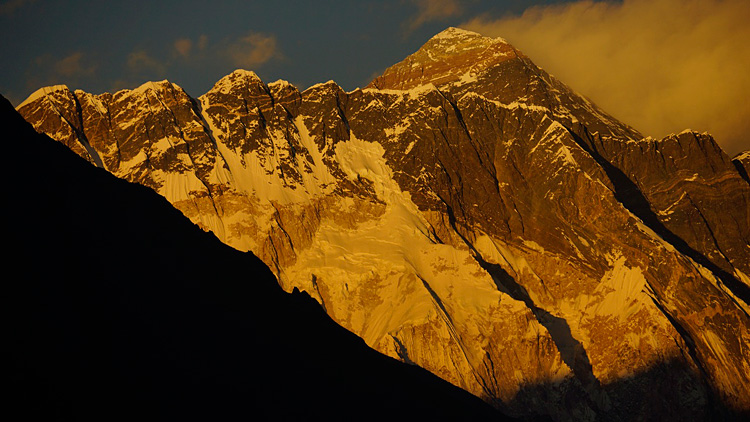 Вече сме в долината Кхумбу и движим по последната отсечка преди Горак Шеп. Пред нас са Пумори и масивите на Нупце и Западно рамо. Правим задължителното изкачване до Кала Патар (5550). Оттук имаме "близък" поглед към най-високото, което отново пожълтява и почервенява, докато изтлее в космически нюанси.